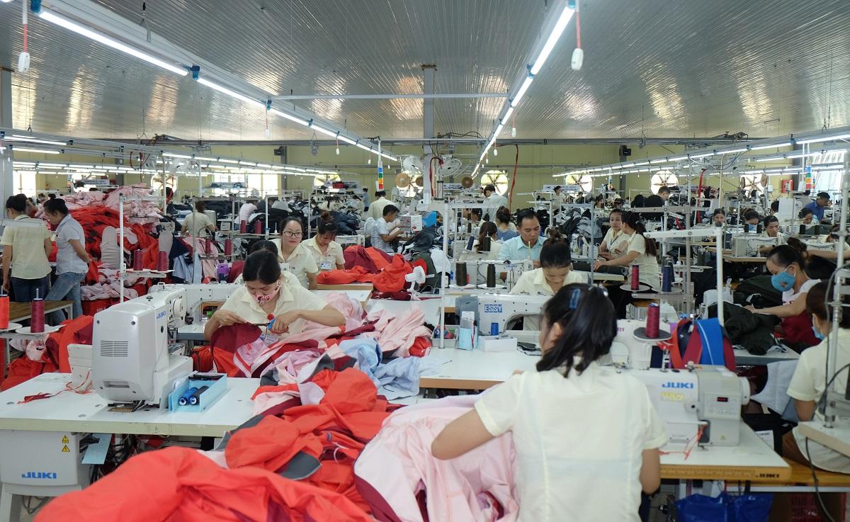 Công nhân làm việc tại Nhà máy may miền Trung, Khu Công nghiệp Tây Bắc Hồ Xá.