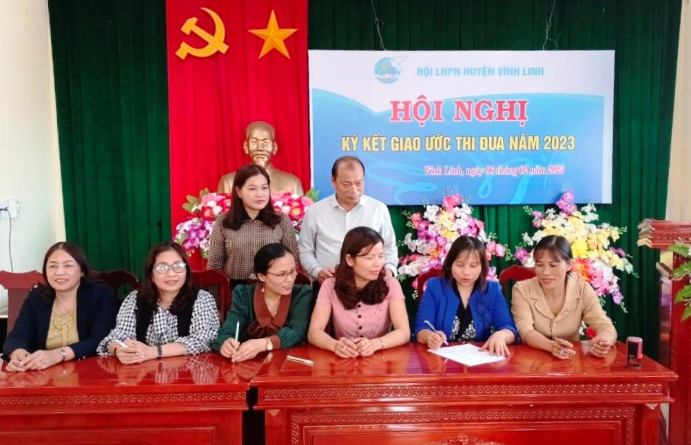 Ngày 6/2/2023, Ban Thường vụ Hội LHPN huyện Vĩnh Linh tổ chức hội nghị ký kết giao ước thi đua năm 2023 với Ban Thường vụ Hội LHPN 18 xã, thị trấn và Hội LHPN Công an huyện.