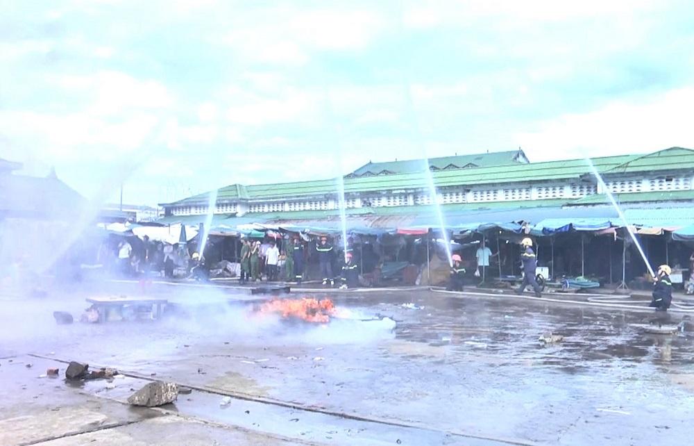 Diễn tập PCCC tại chợ Hồ Xá.