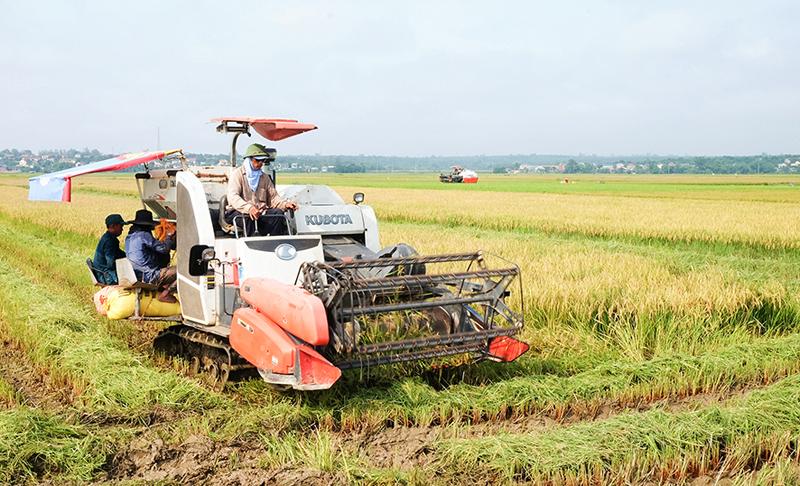 Nông dân Vĩnh Linh làm chủ kỹ thuật mới trong thu hoạch lúa đảm bảo tiến độ vụ mùa.