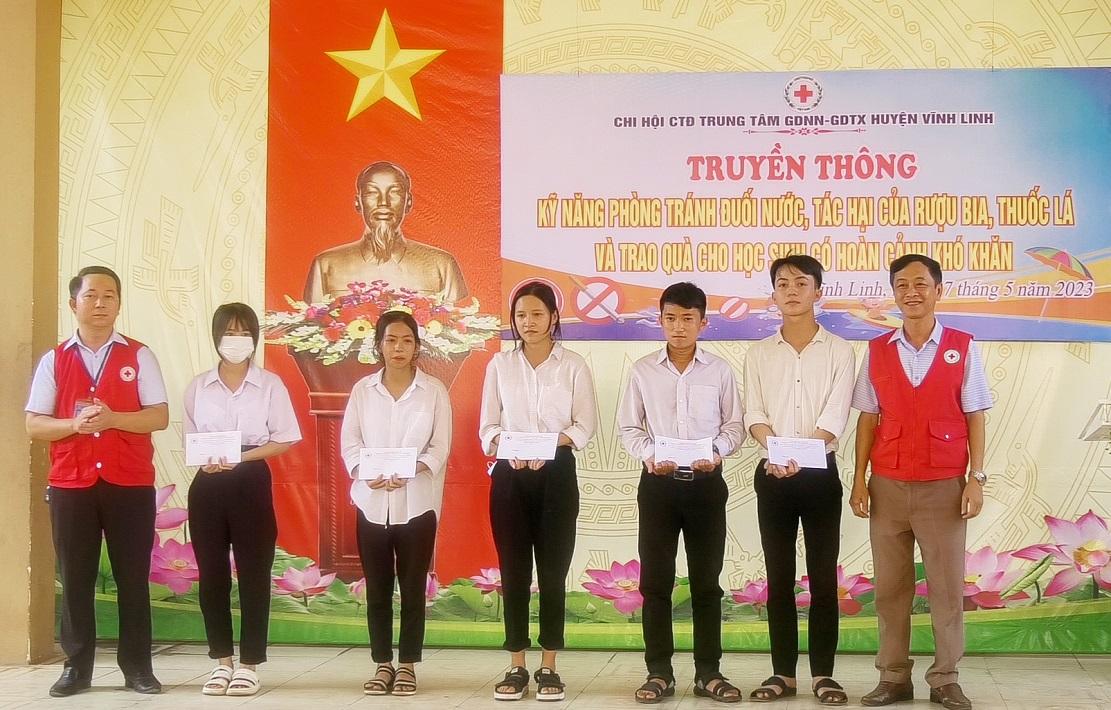 Hưởng ứng Tháng nhân đạo năm 2023, ngày 17/5/2023, Chi hội CTĐ Trung tâm GDNN-GDTX huyện Vĩnh Linh phối hợp với Hội CTĐ tỉnh, Hội CTĐ huyện tổ chức truyền thông kỹ năng phòng tránh đuối nước và tác hại của rượu bia thuốc lá cho các em học sinh trong nhà trường.
