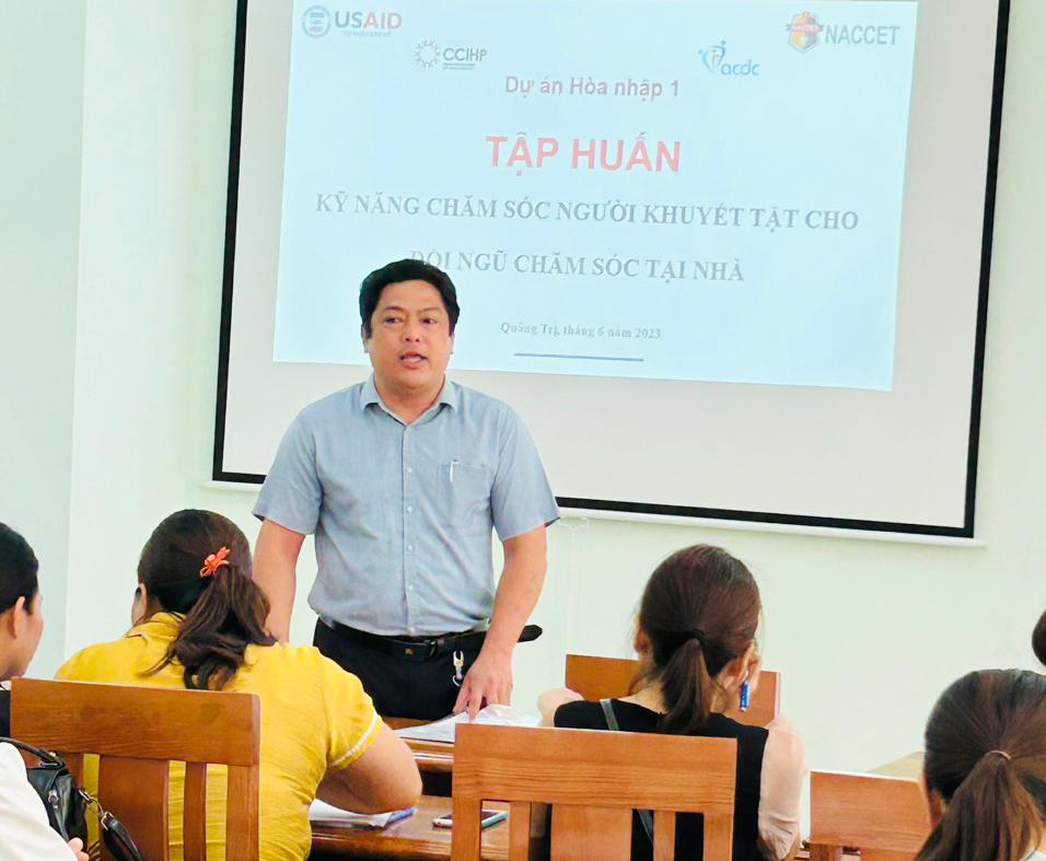 Thực hiện Kế hoạch thực hiện Dự án hòa nhập 1 giai đoạn II, trong thời gian qua, Trung tâm Y tế huyện Vĩnh Linh đã phối hợp với Viện Nghiên cứu phát triển cộng đồng (ACDC) tiến hành tập huấn bồi dưỡng kiến thức, kỹ năng chăm sóc tại cộng đồng, tại nhà cho người khuyết tật do USAID tài trợ.
