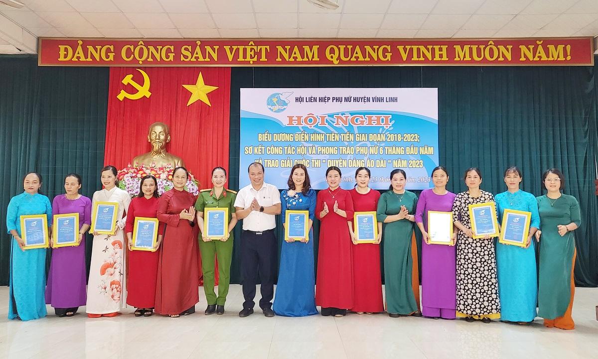 Tại hội nghị, UBND huyện, Hội LHPN huyện Vĩnh Linh đã biểu dương, khen thưởng 31 phụ nữ điển hình tiên tiến giai đoạn 2018- 2023. Nhân dịp này, Hội LHPN huyện Vĩnh Linh triển khai nhiệm vụ 6 tháng cuối năm 2023 và trao giải Cuộc thi “ Duyên dáng áo dài năm 2023”.