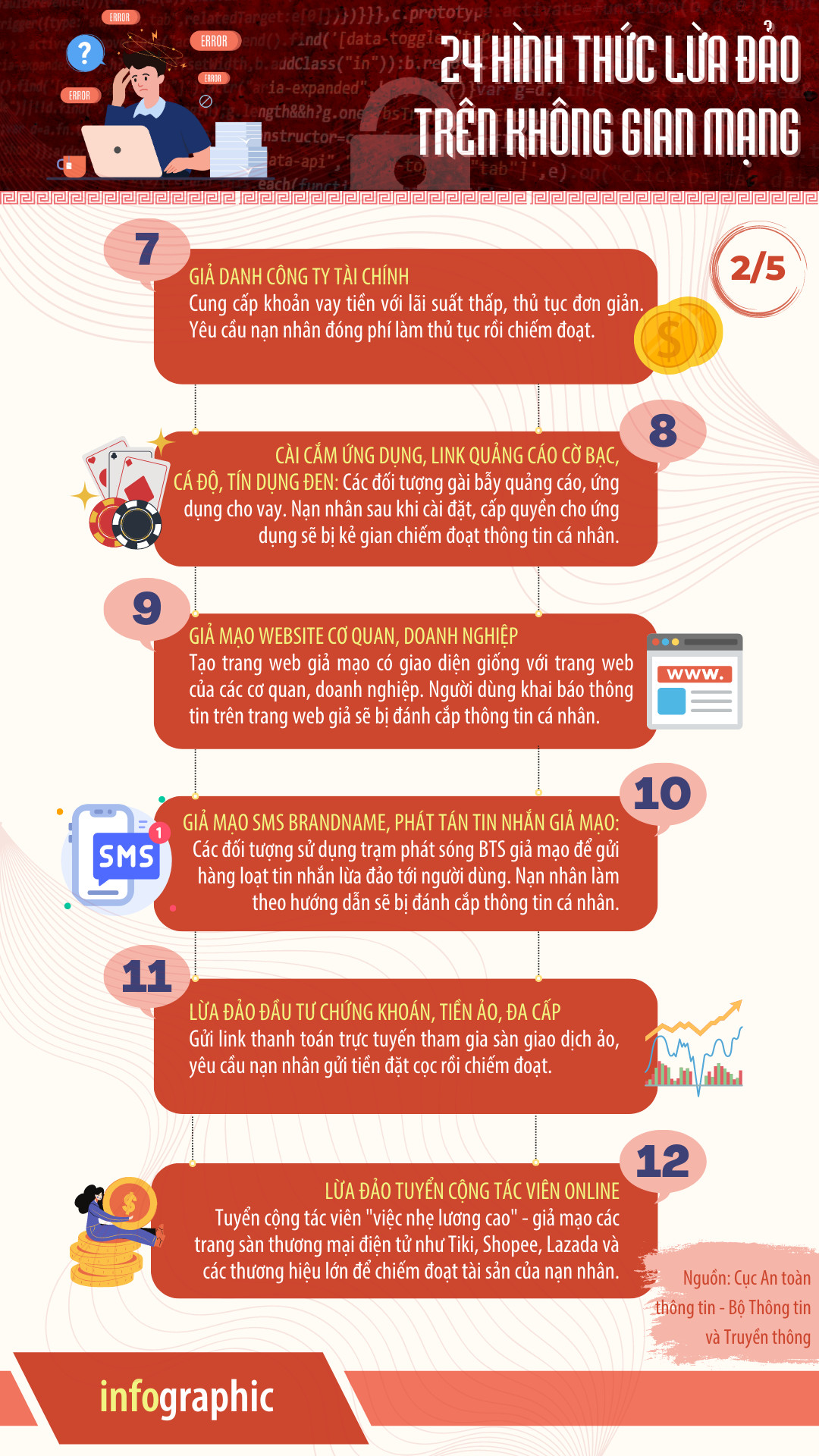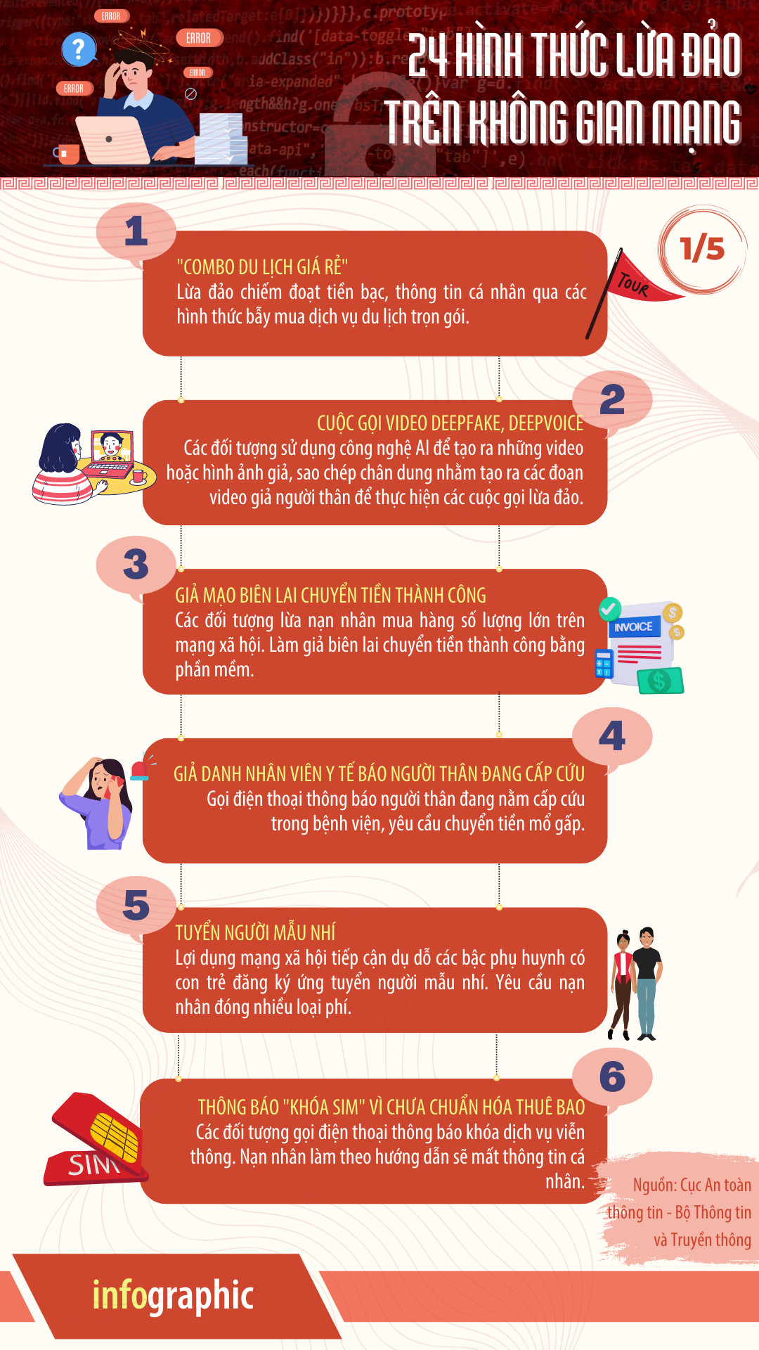 Bộ Infographic tuyên truyền các hình thức lừa đảo trên không gian mạng.