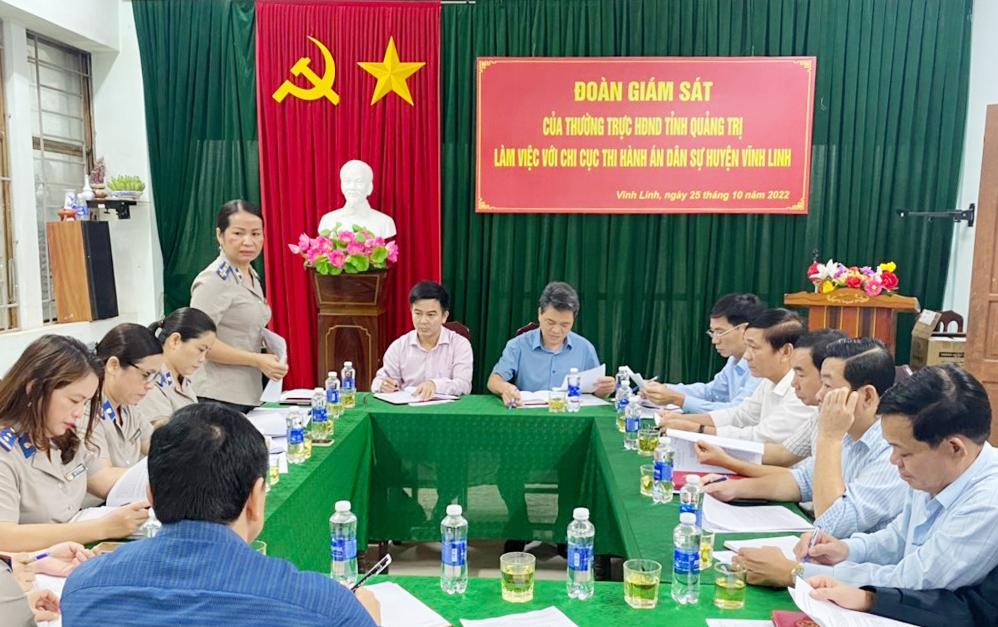 Đoàn giám sát của Thường trực HĐND tỉnh làm việc với Chi cục Thi hành án dân sự huyện Vĩnh Linh.