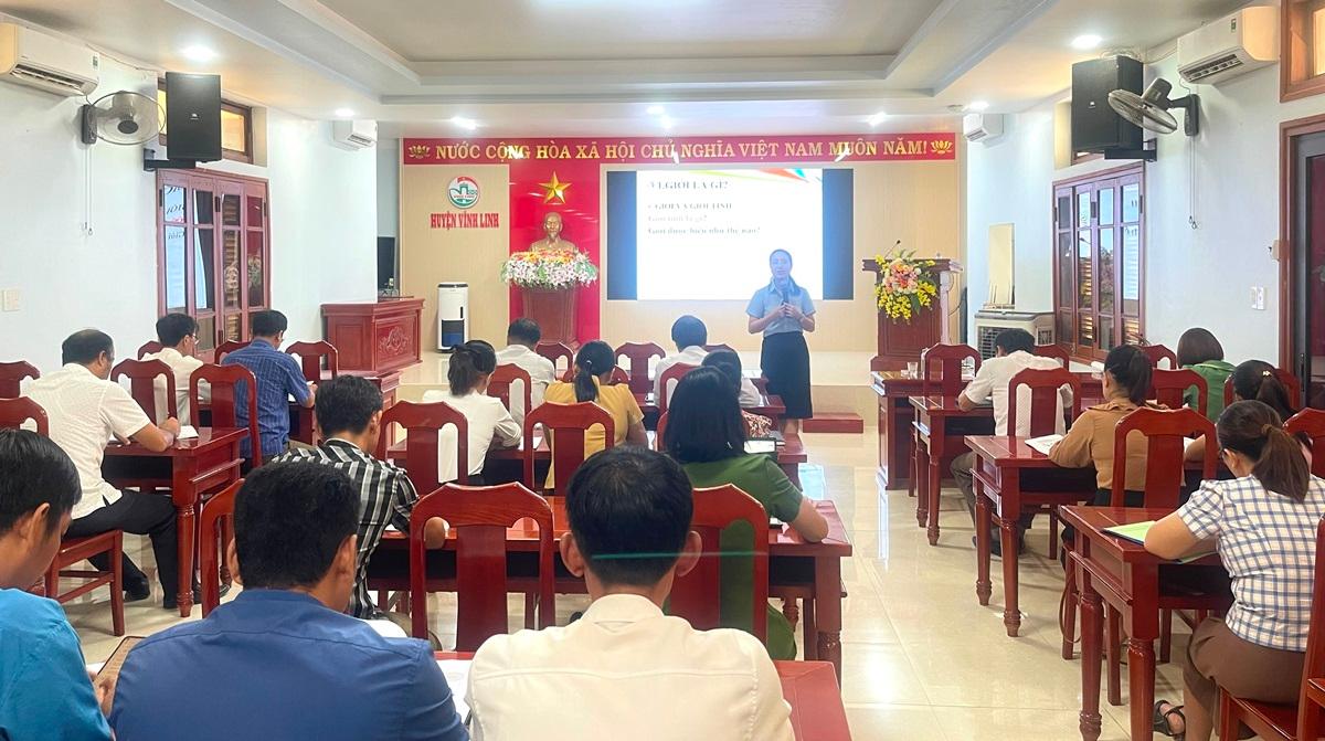 Ngày 29/8/2023, Phòng LĐ-TB&XH huyện Vĩnh Linh tổ chức hội nghị tập huấn nghiệp vụ bình đẳng giới và vì sự tiến bộ của phụ nữ cho thành viên Ban Vì sự tiến bộ của phụ nữ huyện; cán bộ làm công tác bình đẳng giới các xã, thị trấn.