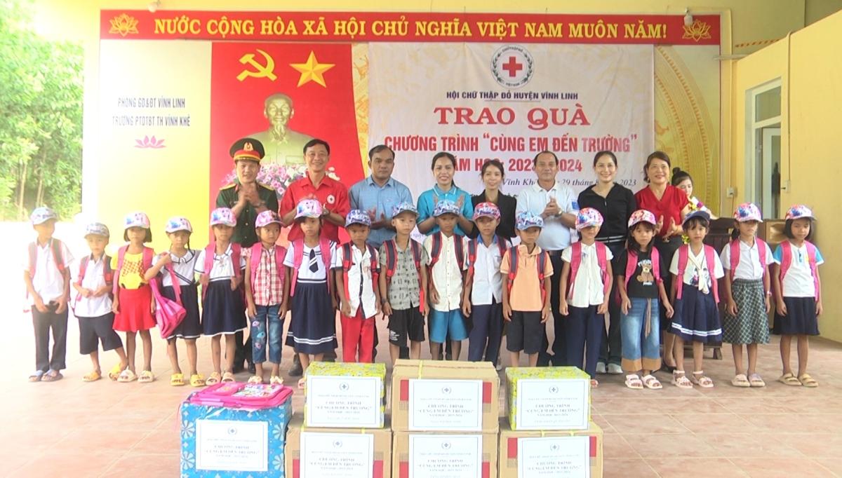 Năm học mới 2023- 2024 đã chính thức bắt đầu. Trong hành trang đến trường năm học này của khoảng 1.600 học sinh thuộc diện khó khăn trên địa bàn huyện Vĩnh Linh tiếp tục có những chiếc cặp mới, tập sách, vở, dụng cụ học tập...; các em hoàn cảnh đặc biệt còn được nhận suất học bổng, bảo trợ, hỗ trợ tiền mặt... Đây là những món quà thiết thực từ chương trình “Cùng em đến trường” được các cấp Hội Chữ thập đỏ huyện Vĩnh Linh duy trì nền nếp trong suốt 7 năm qua.