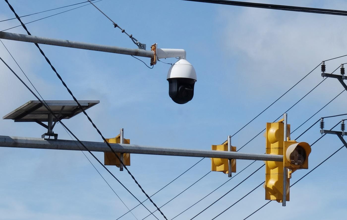 Camera giám sát tại ngã tư đèn đỏ đường Hùng Vương và Trần Phú, thị trấn Hồ Xá.