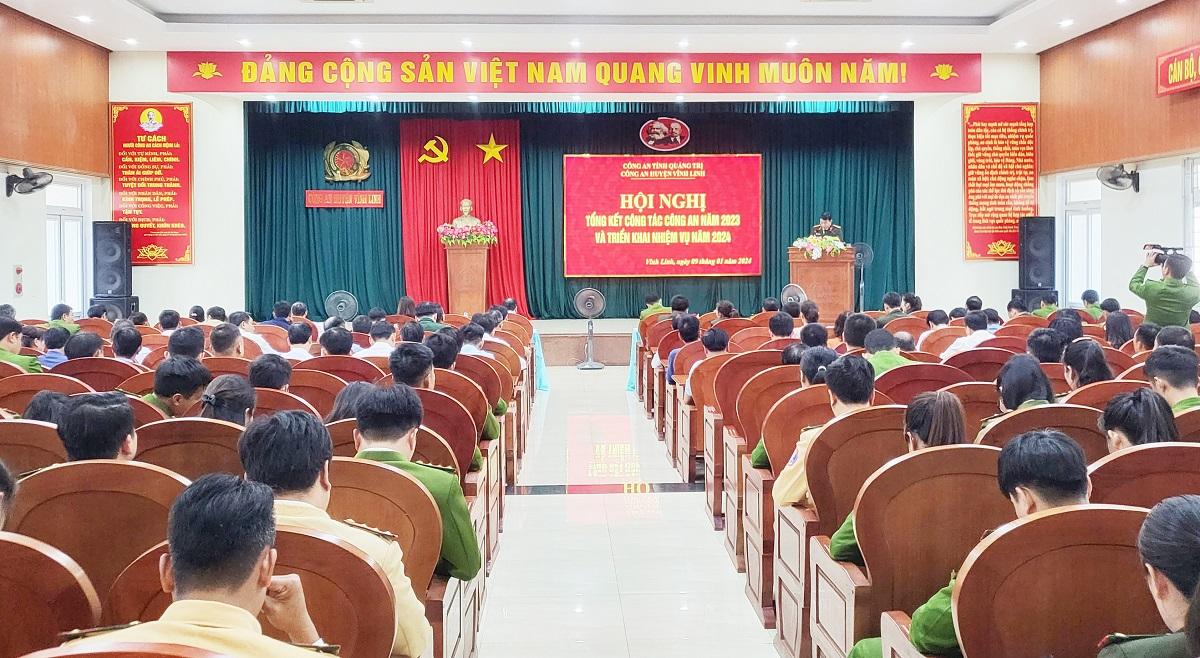 Tại hội nghị, Công an huyện Vĩnh Linh đã triển khai phương hướng, nhiệm vụ trọng tâm năm 2024. Trong đó tập trung thực hiện đồng bộ, triệt để chủ trương, chính sách của Đảng, pháp luật của nhà nước về công tác an ninh chính trị, giữ gìn trật tự an toàn xã hội, củng cố vững chắc thế trận an ninh nhân dân. Tăng cường công tác xây dựng Đảng, xây dựng lực lượng Công an nhân dân trong sạch, vững mạnh. Tiếp tục phát động sâu rộng phong trào toàn dân bảo vệ an ninh Tổ quốc. Phấn đấu tỷ lệ điều tra, khám phá các vụ án hình sự, án rất nghiêm trọng, đặc biệt nghiêm trọng đạt và vượt kế hoạch đề ra. Hạn chế đến mức thấp nhất các vụ tai nạn giao thông, cháy nổ xãy ra. Chủ động làm tốt công tác phòng ngừa, ngăn chặn tình trạng đốt pháo nổ, bảo vệ an toàn tuyệt đối các hoạt động phục vụ nhân dân vui Xuân đón Tết nguyên đán Giáp Thìn 2024.