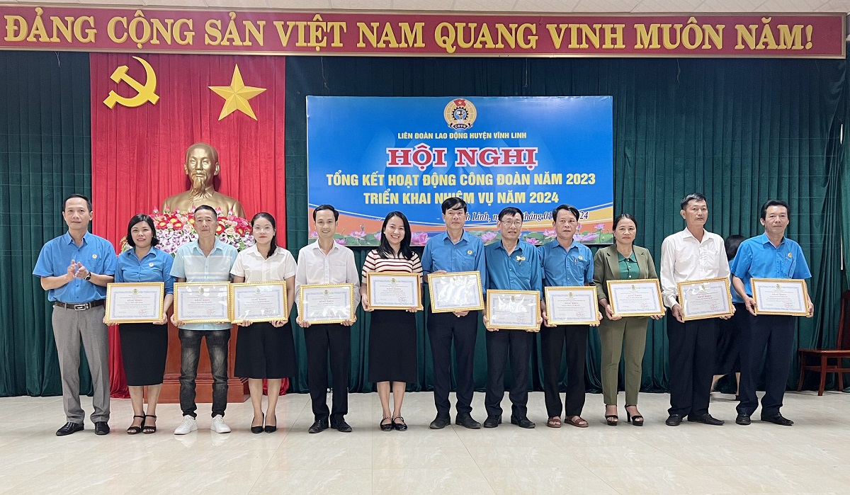 Ngày 16/1/2024, Liên đoàn lao động huyện Vĩnh Linh tổ chức hội nghị tổng kết hoạt động công đoàn năm 2023 và triển khai phương hướng, nhiệm vụ năm 2024.