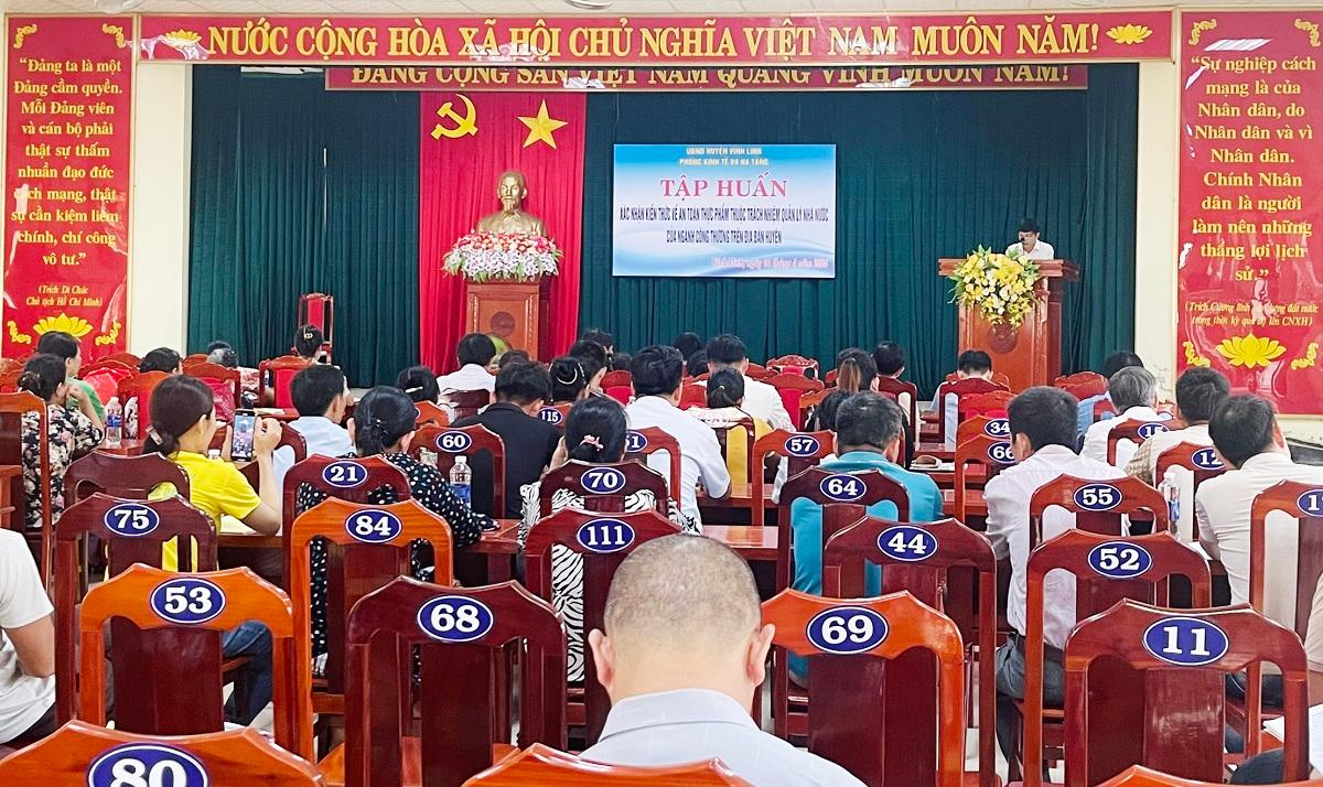 Ngày 04/4/2024, Phòng Kinh tế - Hạ tầng huyện Vĩnh Linh tổ chức hội nghị tập huấn kiến thức về an toàn thực phẩm thuộc trách nhiệm quản lý nhà nước của ngành Công thương cho các hộ tiểu thương sản xuất và kinh doanh ngành hàng công thương trên địa bàn.