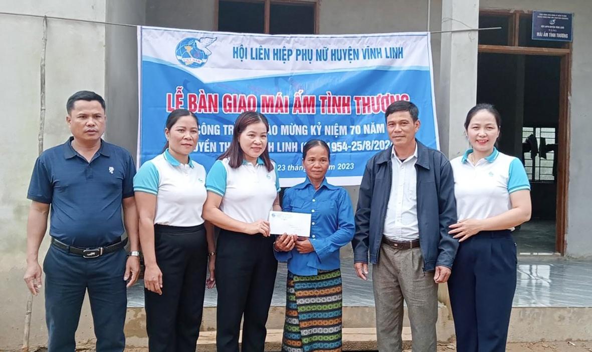 Hội LHPN huyện Vĩnh Linh bàn giao “Mái ấm tình thương” cho phụ nữ nghèo xã Vĩnh Ô, huyện Vĩnh Linh - Ảnh do cơ sở cung cấp