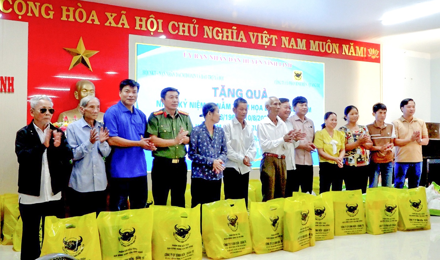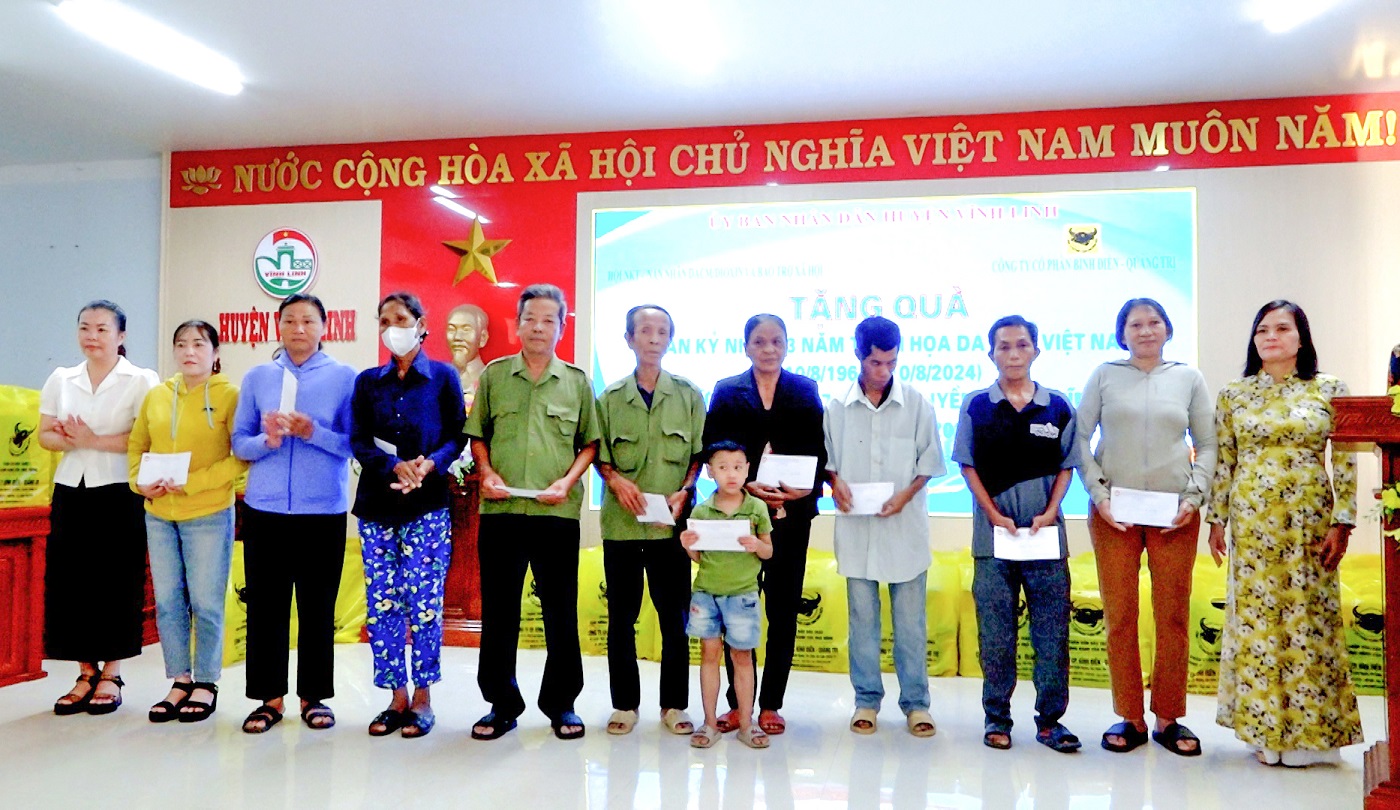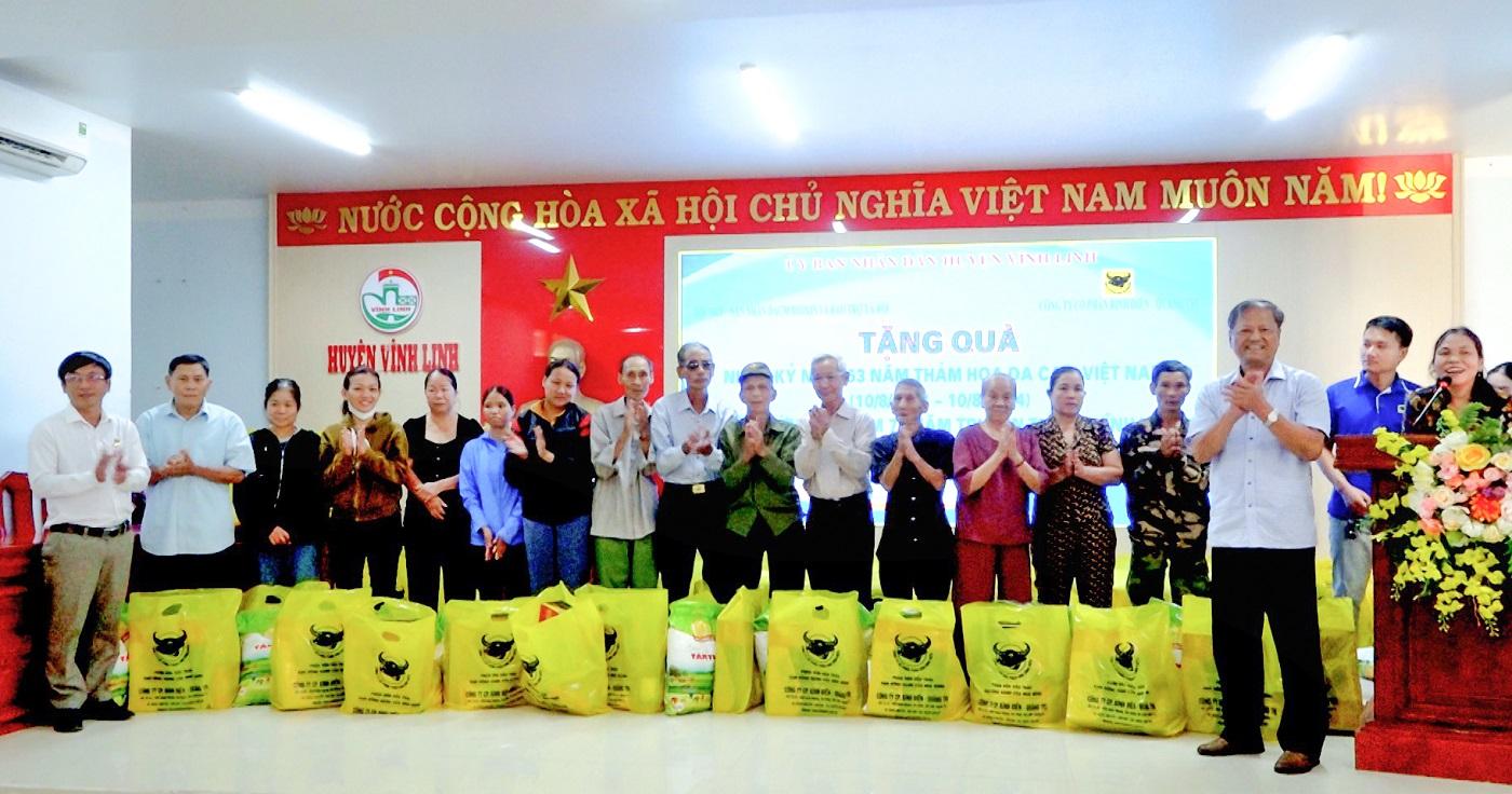 Tại chương trình, 70 suất quà đã được trao đến 70 người bị nhiễm chất độc da cam/điôxin và người khuyết tật hoàn cảnh đặc biệt khó khăn. Trong đó, Công ty Cổ phần Bình Điền Quảng Trị hỗ trợ 60 suất quà bằng hiện vật, trị giá khoảng 500 ngàn đồng/suất; Qũy “Vì người nghèo” huyện Vĩnh Linh trợ giúp 10 suất quà, 300 ngàn đồng tiền mặt/suất.