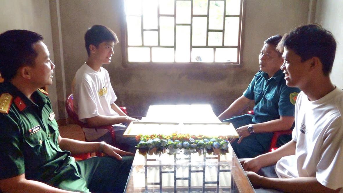 Đại diện Ban CHQS huyện Vĩnh Linh và xã Vĩnh Long gặp mặt động viên hai anh em Dũng và Tiến trước ngày nhập học.
