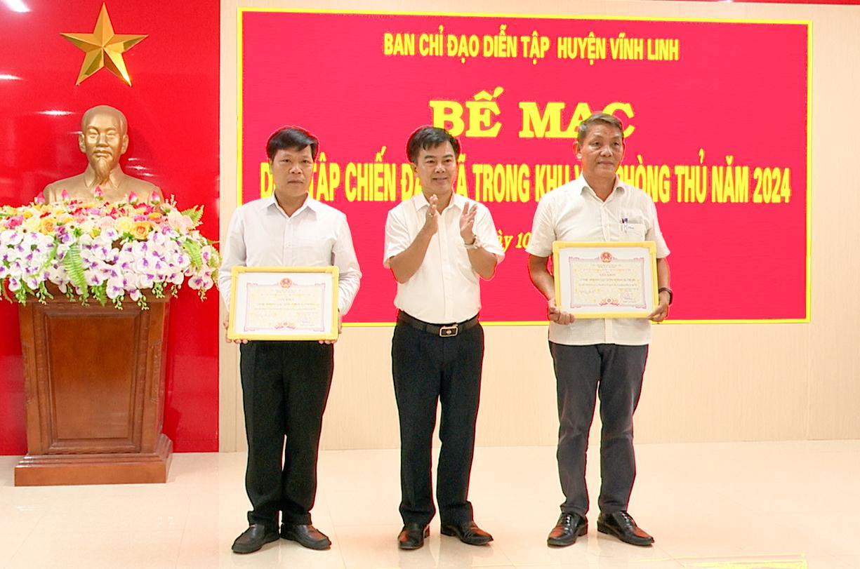 Tại buổi bế mạc, Chủ tịch UBND huyện Vĩnh Linh đã tặng giấy khen cho 2 tập thể và 10 có thành tích xuất sắc trong công tác diễn tập chiến đấu cấp xã trong khu vực phòng thủ năm 2024.