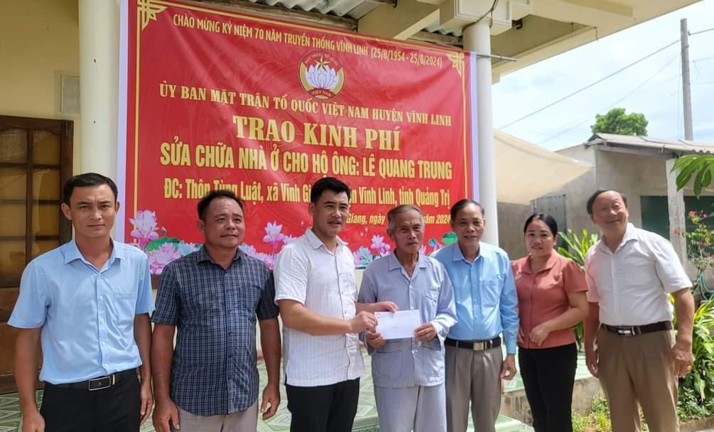 Từ đầu năm 2024 đến nay, Ủy ban Mặt trận TQVN, Ban vận động Quỹ “Vì người nghèo” huyện Vĩnh Linh đã hỗ trợ xây dựng mới, sửa chữa thêm 30 nhà Đại đoàn kết cho hộ nghèo trên địa bàn.