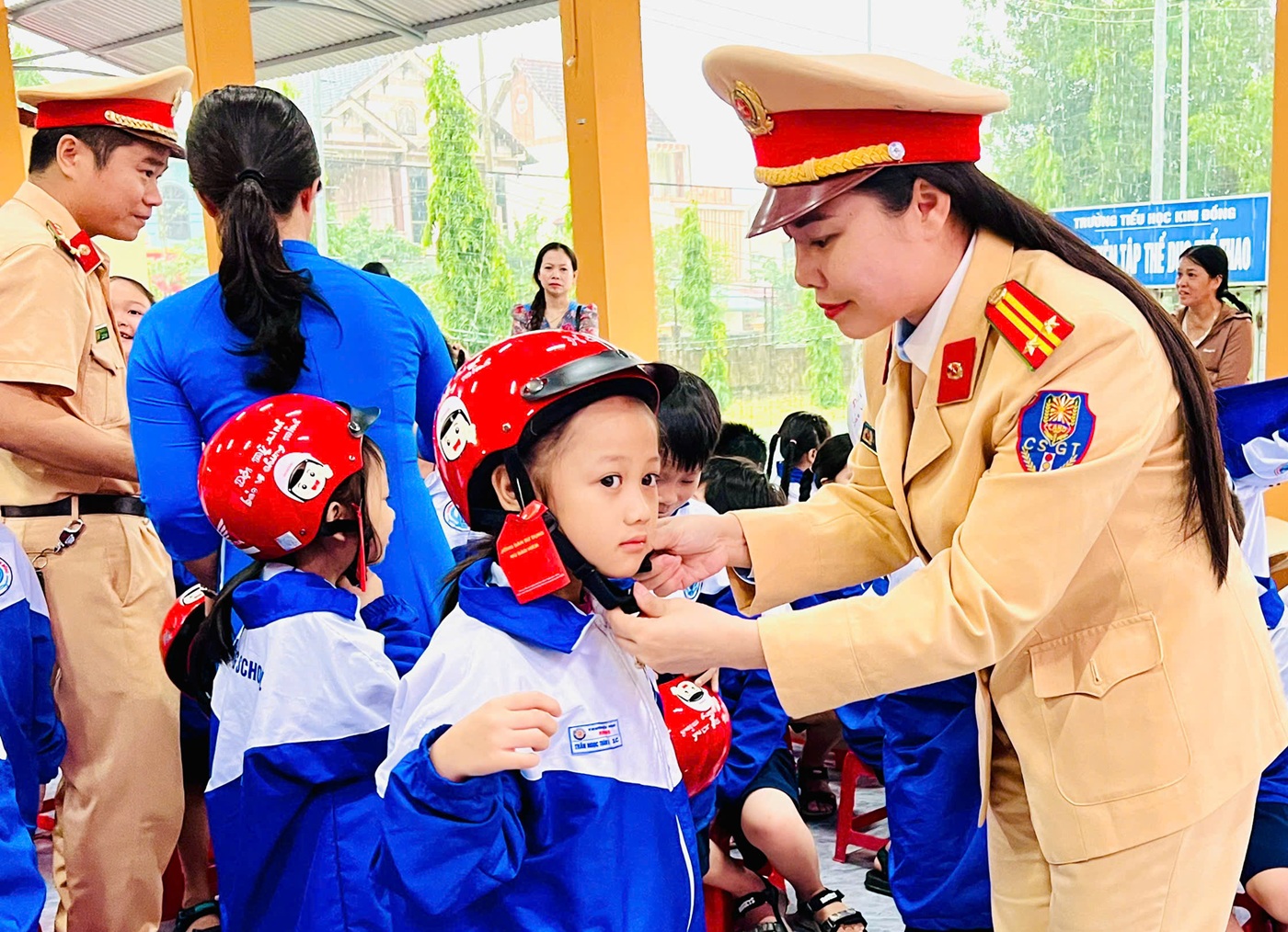Tổ chức Chương trình trao mũ bảo hiểm cho học sinh lớp 1 tại tường Tiểu học Kim Đồng