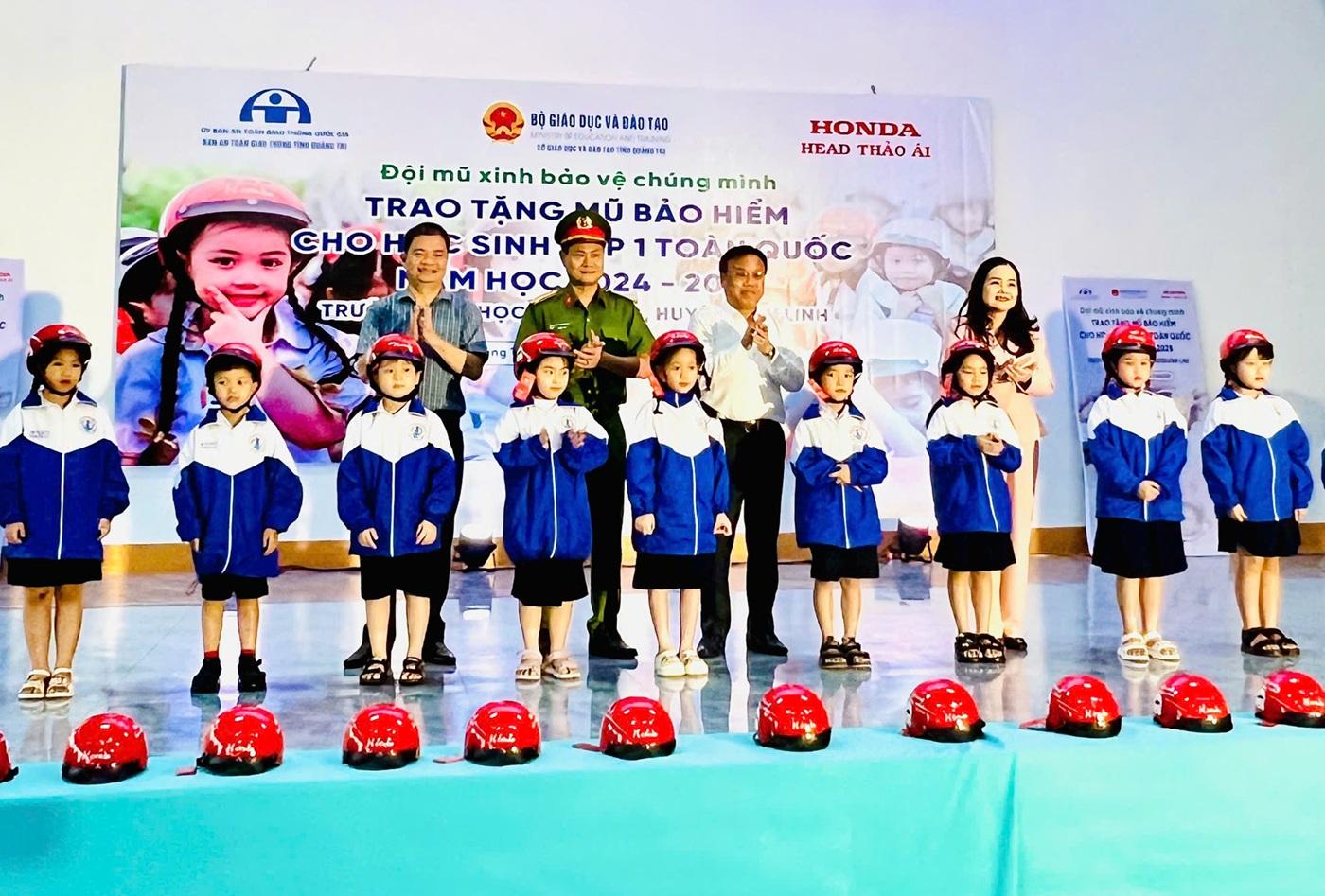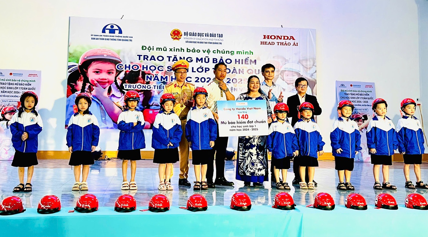 Tại buổi lễ, Ban Tổ chức đã tặng 140 mũ bảo hiểm đạt chuẩn cho các em học sinh lớp 1 của trường Tiểu học Kim Đồng. Đội Cảnh sát giao thông- Trật tự Công an huyện Vĩnh Linh tuyên truyền Luật Giao thông đường bộ cho cán bộ, giáo viên, phụ huynh, học sinh nhà trường. Đội hướng dẫn viên lái xe an toàn của Honda Thảo Ái, đại diện cho Công ty Honda Việt Nam tại Quảng Trị đã hướng dẫn các em học sinh đội mũ bảo hiểm đúng cách, đảm bảo an toàn trước khi cùng người lớn tham gia giao thông.