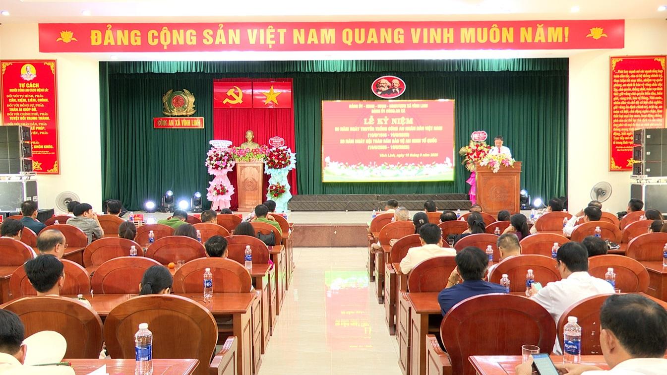 Ngày 16/8/2025, xã Vĩnh Linh tổ chức Lễ kỷ niệm 80 năm Ngày truyền thống Công an nhân dân Việt Nam (19/8/1945-19/8/2025) và 20 năm Ngày hội toàn dân bảo vệ an ninh Tổ quốc (19/8/2005 - 19/8/2025).