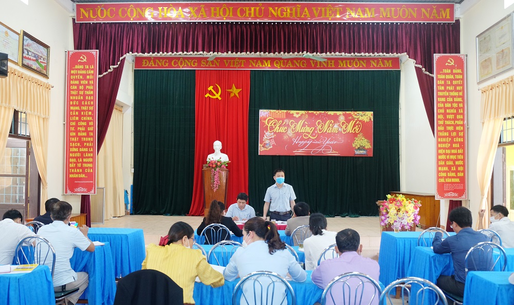 Chiều ngày 18/2/2022, Phó Chủ tịch UBND huyện Vĩnh Linh Nguyễn Thiên Tùng chủ trì buổi làm việc với xã Vĩnh Long về di tích lịch sử văn hóa cấp tỉnh Miếu bà Vương phi họ Lê.