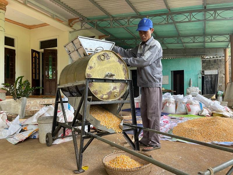 Từ đầu tháng 5/2022 đến nay, vào vụ thu hoạch ngô, hầu như ngày nào anh Nguyễn Chí Trung cũng tất bật với công việc từ sáng sớm đến chiều muộn bên chiếc máy tách ngô tự động do chính anh học hỏi, chế tạo nên. Ngoài nhận tách ngô cho các hộ ở thị trấn Hồ Xá mang đến nhà, với những hộ có sản lượng ngô trên 1 tạ, dù khác địa bàn và phải đi xa, anh Trung cũng trực tiếp vận chuyển máy đến tận nơi để phục vụ, trong đó nhiều nhất ở những xã Vĩnh Chấp, Trung Nam, Vĩnh Tú… Về ý tưởng tạo ra chiếc máy tách hạt ngô tự động này, anh Trung cho hay, gia đình anh trồng trên 1 ha ngô, trước đây, cứ đến mùa thu hoạch, cũng như bao hộ khác chủ yếu tách ngô thủ công, khá vất vả, mất thời gian.