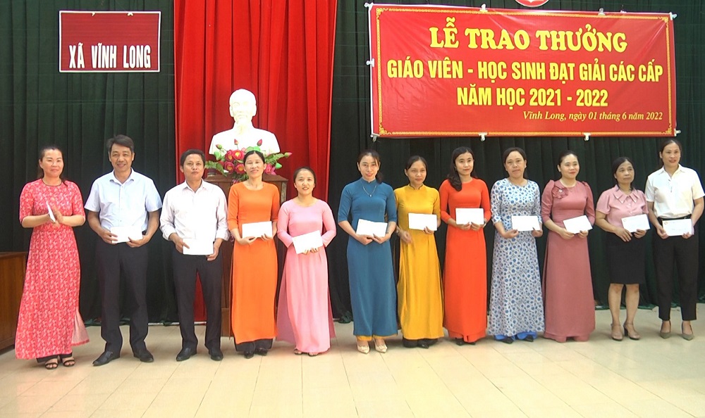 Ngày 1/6/2022, UBND xã Vĩnh Long tổ chức lễ tuyên dương, khen thưởng 144 học sinh và giáo viên đạt thành tích xuất sắc năm học 2021- 2022.