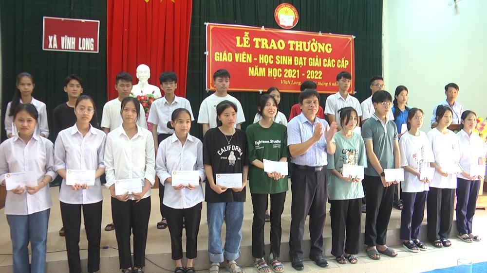Đây là những học sinh, giáo viên đại diện cho các đơn vị, trường học trên địa bàn xã Vĩnh Long, năm học qua đã nỗ lực vượt khó dạy tốt- học tốt, vươn lên đạt nhiều kết quả đáng tự hào, góp phần cổ vũ, đẩy mạnh phong trào khuyến học- khuyến tài của địa phương.