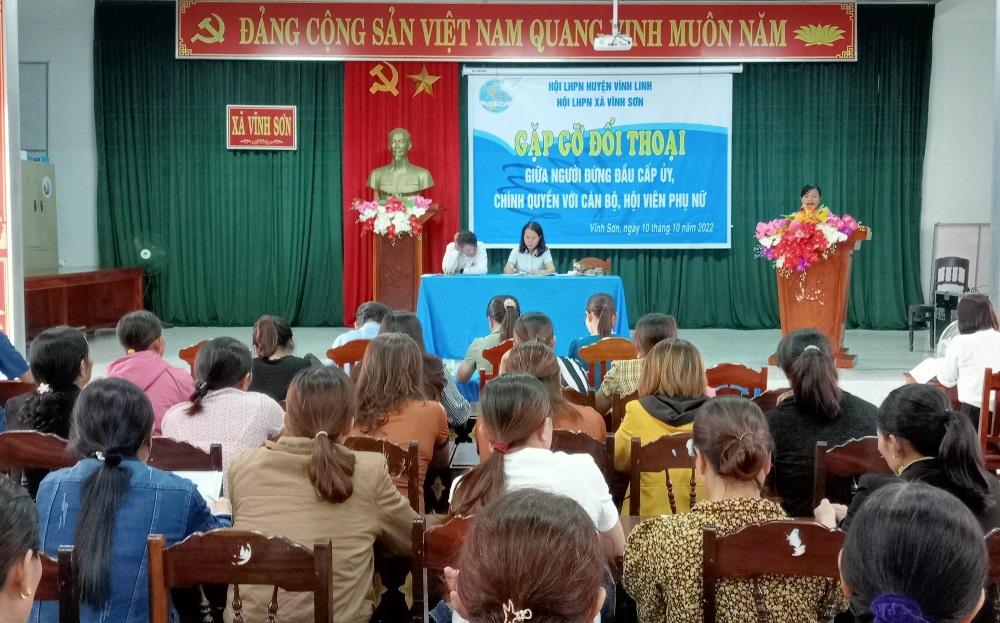 Hướng đến kỷ niệm 92 năm Ngày thành lập Hội LHPN Việt Nam 20/10 (1930- 2022), ngày 10/10/2022, Hội LHPN xã Vĩnh Sơn phối hợp với cấp ủy, chính quyền địa phương tổ chức hội nghị đối thoại giữa người đứng đầu cấp ủy, chính quyền với cán bộ, hội viên phụ nữ. Đây là đơn vị Hội LHPN huyện Vĩnh Linh chọn làm điểm tiến đến nhân rộng hội nghị đối thoại trong toàn huyện.