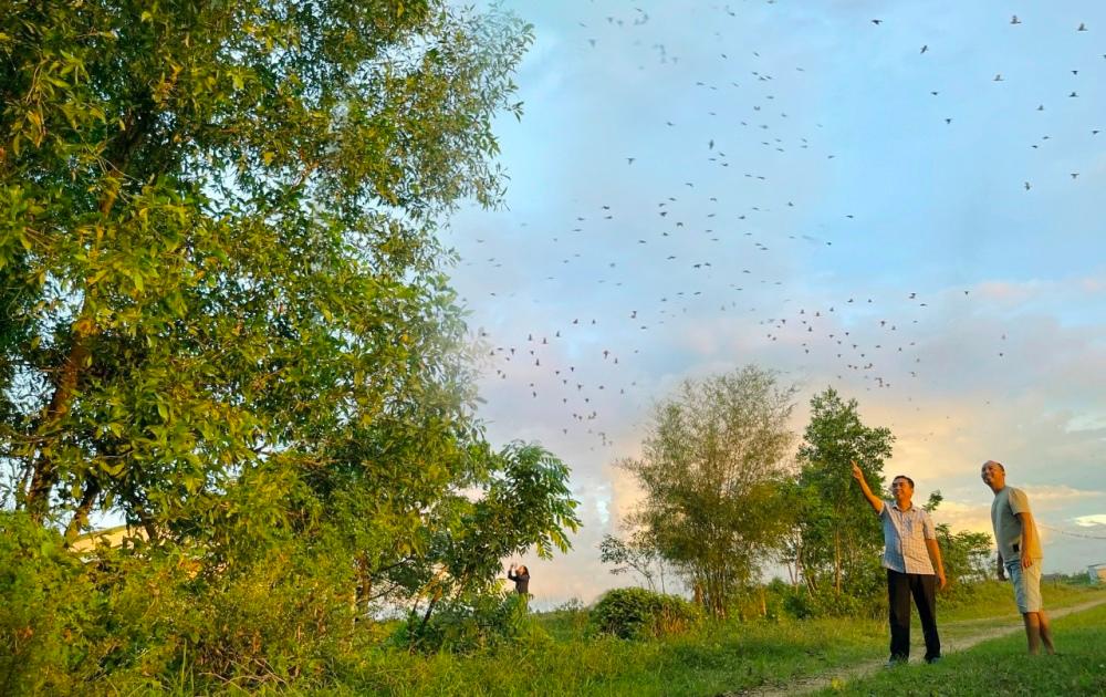 Anh Lành tâm sự: “Từ khi hết đàn chim này đến đàn chim khác đến “tá túc”, khu vực này như có thêm những thành viên mới đặc biệt. Rạng sáng và khi hoàng hôn buông xuống, chim bay lượn, hót râm ran cả một góc trời.