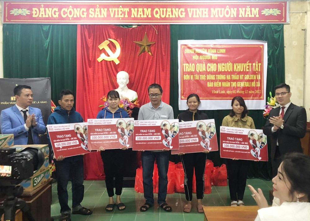 Toàn bộ kinh phí của đợt trao quà do Đông trùng hạ thảo NT Golden và Bảo hiểm nhân thọ Generali Hồ Xá tài trợ. Được biết từ đầu năm 2022 đến nay, các nhà hảo tâm, doanh nghiệp đã đến thăm và trao hỗ trợ trên 300 suất quà trị giá khoảng 140 triệu đồng cho hộ nghèo, cận nghèo, gia đình gặp hoàn cảnh khó khăn thuộc hội viên Hội Người mù huyện Vĩnh Linh.