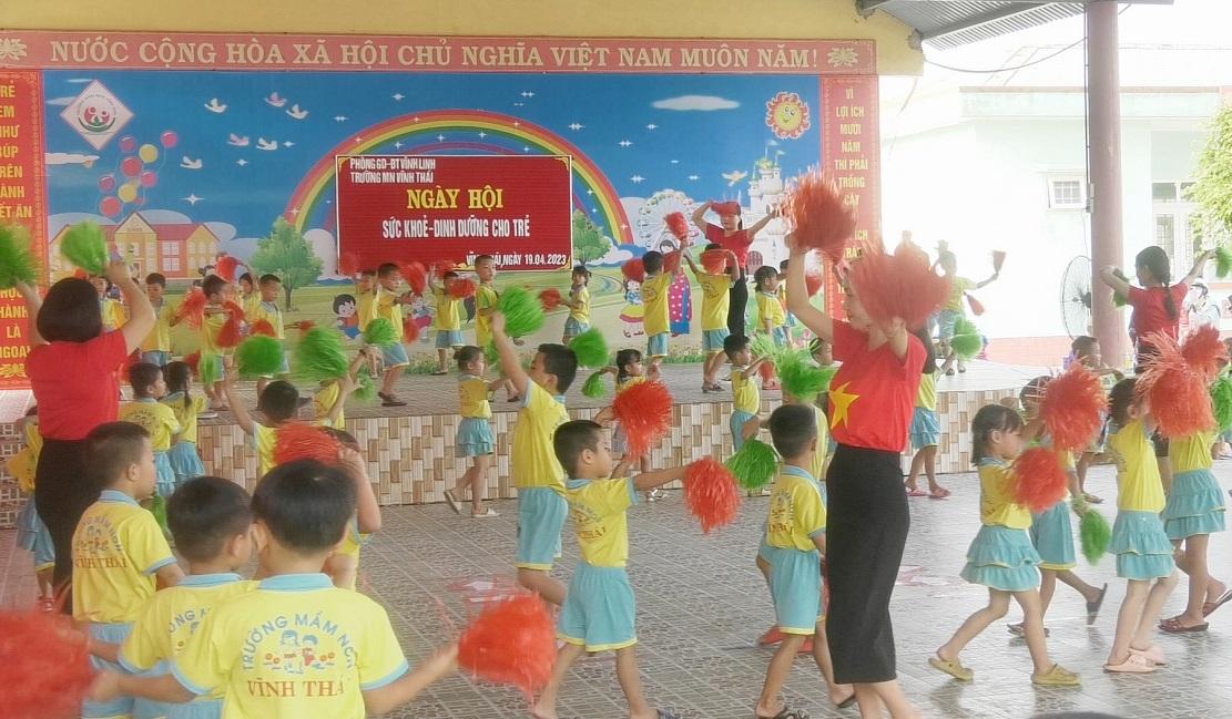 Thực hiện chương trình giáo dục năm học 2022- 2023, ngày 19/4/2023, trường Mầm non Vĩnh Thái đã tổ chức hoạt động “Ngày hội sức khỏe và dinh dưỡng cho bé”.