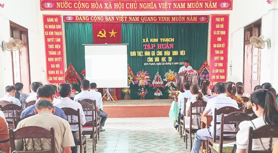 Ngày 20/4/2023, xã Kim Thạch tổ chức tập huấn các nội dung triển khai thực hiện Chương trình “Xây dựng mô hình công dân học tập giai đoạn 2021-2030” và đẩy mạnh tuyên truyền, nâng cao nhận thức về tầm quan trọng của việc thực hiện mô hình “Công dân học tập” trên địa bàn xã.
