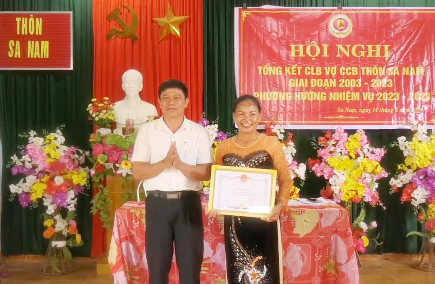 Nhân dịp này, UBND xã đã khen thưởng tập thể CLB vợ CCB thôn Sa Nam vì đã có nhiều đóng góp xuất sắc trong giai đoạn 2003- 2023.