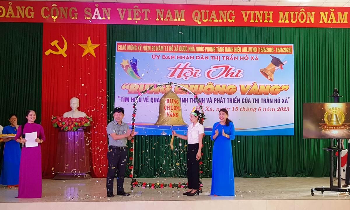 Hướng tới kỷ niệm 20 năm thị trấn Hồ Xá đón nhận danh hiệu Anh hùng LLVTND 15/8 (2003- 2023) gắn với kỷ niệm 70 năm ngày truyền thống Vĩnh Linh 25/8 (1954-2024), ngày 15/6/2023, thị trấn Hồ Xá tổ chức hội thi Rung chuông vàng với chủ đề “Tìm hiểu về quá trình hình thành và phát triển của thị trấn Hồ Xá”.