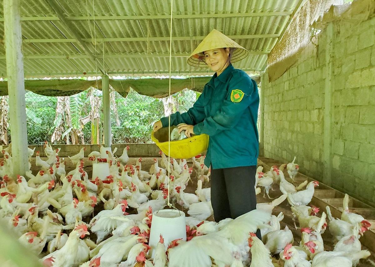 Cũng nhờ vậy, mà dần dần đàn bò sinh trưởng tốt, trung bình mỗi năm gia đình chị nuôi và xuất bán được 3 lứa bò với tổng cộng 40- 50 con, đem lại lợi nhuận từ 140- 150 triệu đồng. Sau khi việc chăn nuôi bò dần đi vào ổn định, chị Dịu tiếp tục đầu tư nuôi gà mái đẻ. Đầu năm 2022, gia đình chị đã tiếp tục chuyển đổi thêm 1.500 mét vuông đất trồng trọt để xây dựng trang trại nuôi gà với quy mô 500 con. Vì đã có kinh nghiệm chăn nuôi, phòng trừ dịch bệnh nên đàn gà phát triển tốt, sau khoảng hơn 4 tháng nuôi thì bắt đầu đẻ trứng và duy trì đều đặn mỗi ngày. Hiện tại, trung bình mỗi ngày từ trại gà, chị Dịu thu được khoảng 340- 380 quả trứng, sau khi trừ các khoản chi phí thì đem lại lợi nhuận từ 12- 15 triệu đồng mỗi tháng.