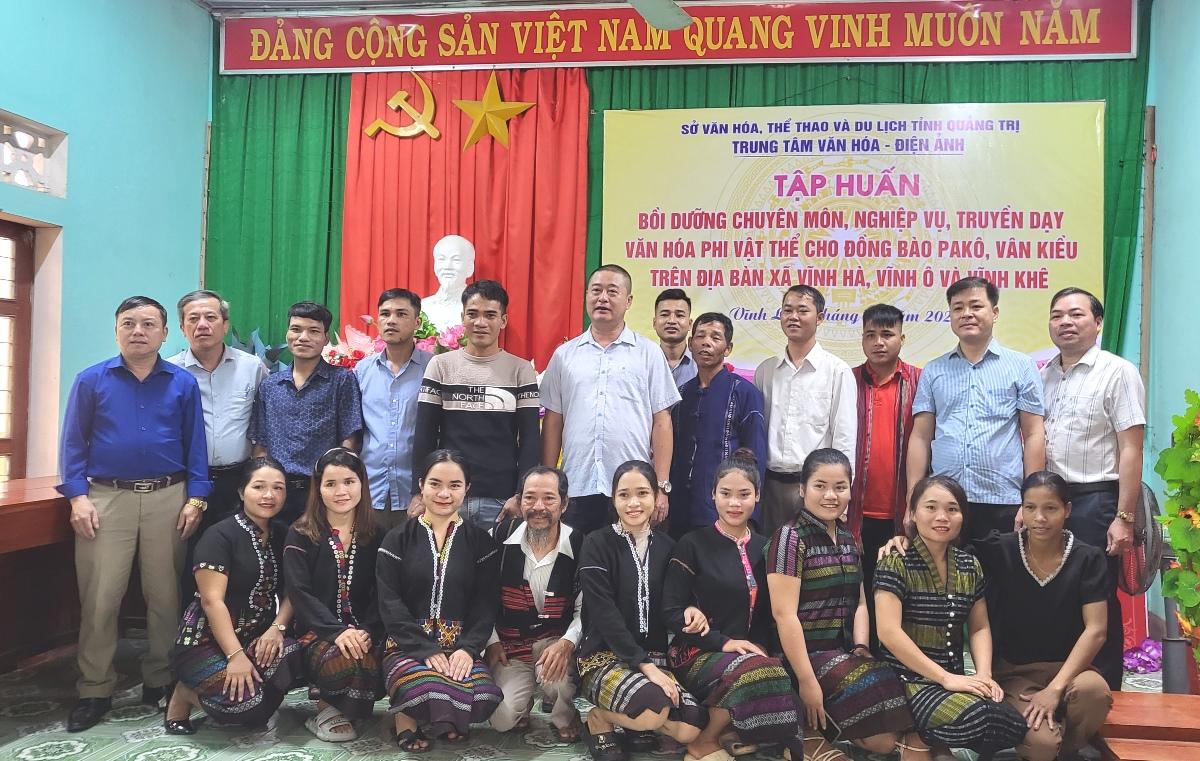 Ngày 21/10/2023, Sở VHTT&DL tỉnh Quảng Trị phối hợp với huyện Vĩnh Linh tổ chức lớp tập huấn bồi dưỡng chuyên môn, nghiệp vụ, truyền dạy văn hoá phi vật thể (nghệ thuật trình diễn dân gian) cho cán bộ phụ trách văn hoá, hạt nhân văn nghệ người đồng bào dân tộc Vân Kiều thuộc 3 xã miền núi Vĩnh Ô, Vĩnh Khê và Vĩnh Hà.