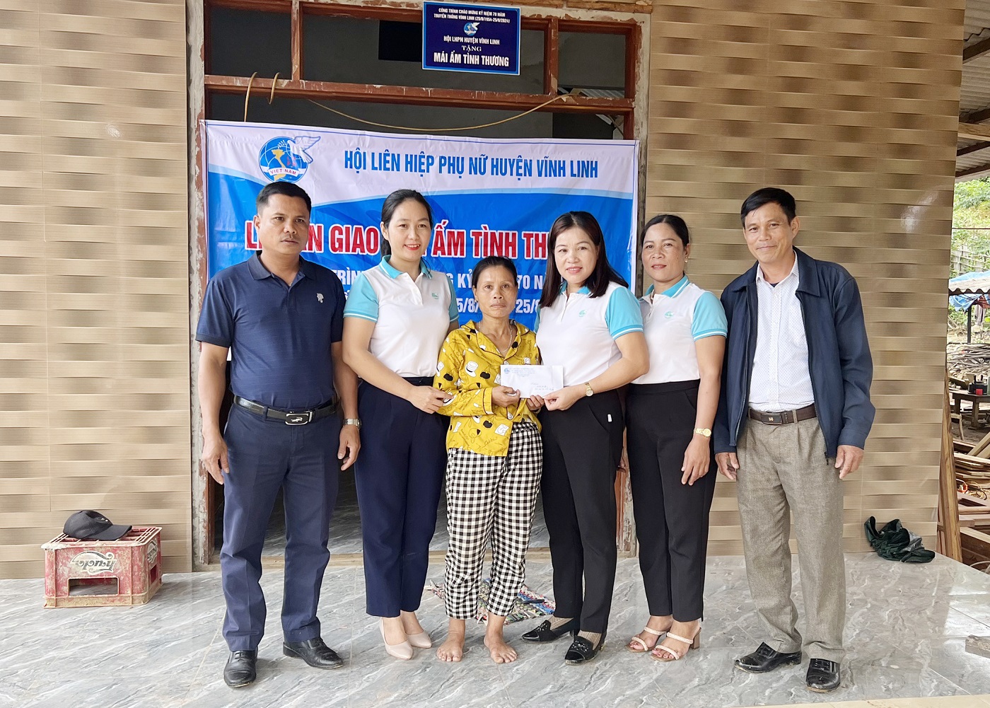 Chia sẽ với hoàn cảnh khó khăn của gia đình 2 chị, Hội LHPN huyện Vĩnh Linh đã hỗ trợ mỗi gia đình 30 triệu đồng để xây dựng nhà “Mái ấm tình thương” và 5 triệu đồng để xây nhà tiêu hợp vệ sinh. Cũng với sự hỗ trợ của chính quyền và người thân sau 3 tháng thi công ngôi nhà “Mái ấm tình thương” đã cơ bản hoàn thành và đưa vào sử dụng.