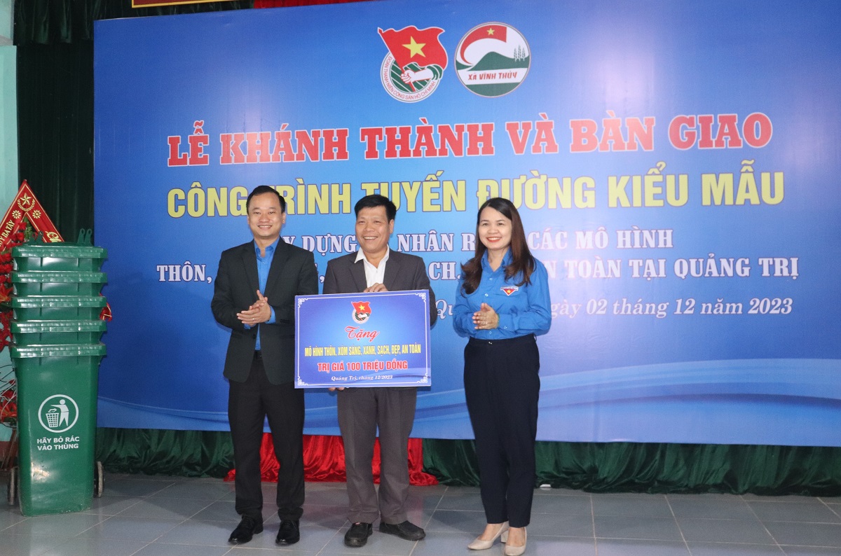 Tỉnh đoàn bàn giao vốn hỗ trợ xây dựng ”Tuyến đường kiểu mẫu” của Trung ương đoàn cho địa phương - Ảnh: T.P