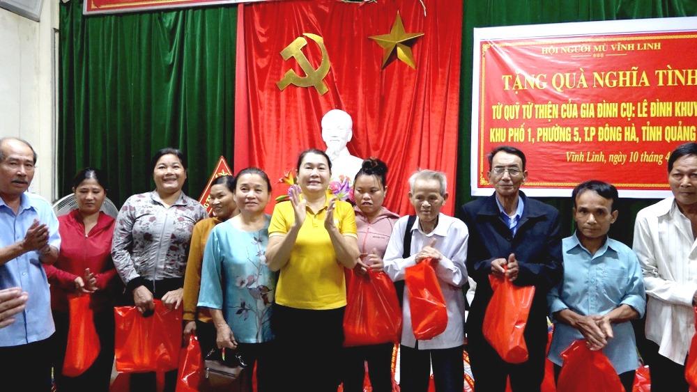 Nhân kỷ niệm 55 ngày thành lập Hội Người mù Việt Nam 17/4 (1969 - 2024), 26 năm ngày người khuyết tật Việt Nam 18/4 (1998- 2024), ngày 10/4/2024, Hội Người mù huyện Vĩnh Linh tổ chức trao quà nghĩa tình đến 100 người khuyết tật hoàn cảnh khó khăn trên địa bàn.