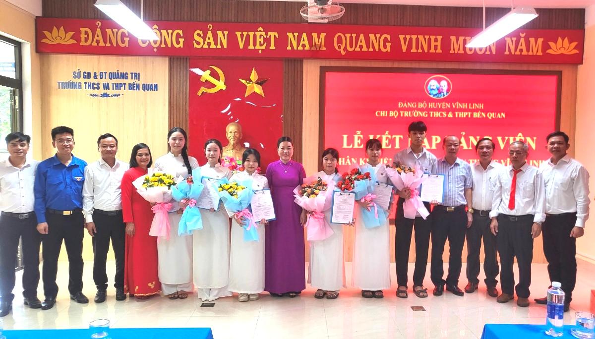 Thực hiện Chỉ thị số 24-CT/HU, ngày 1/3/2024 của Ban Thường vụ Huyện ủy Vĩnh Linh “về kết nạp đảng viên nhân dịp kỷ niệm 70 năm truyền thống Vĩnh Linh 25/8 (1954 - 2024)”, ngày 17/5/2024, Chi bộ trường THCS&THPT Bến Quan tổ chức lễ kết nạp cho 6 học sinh xuất sắc đứng vào hàng ngũ của Đảng.