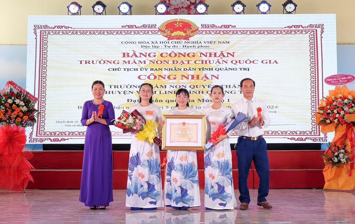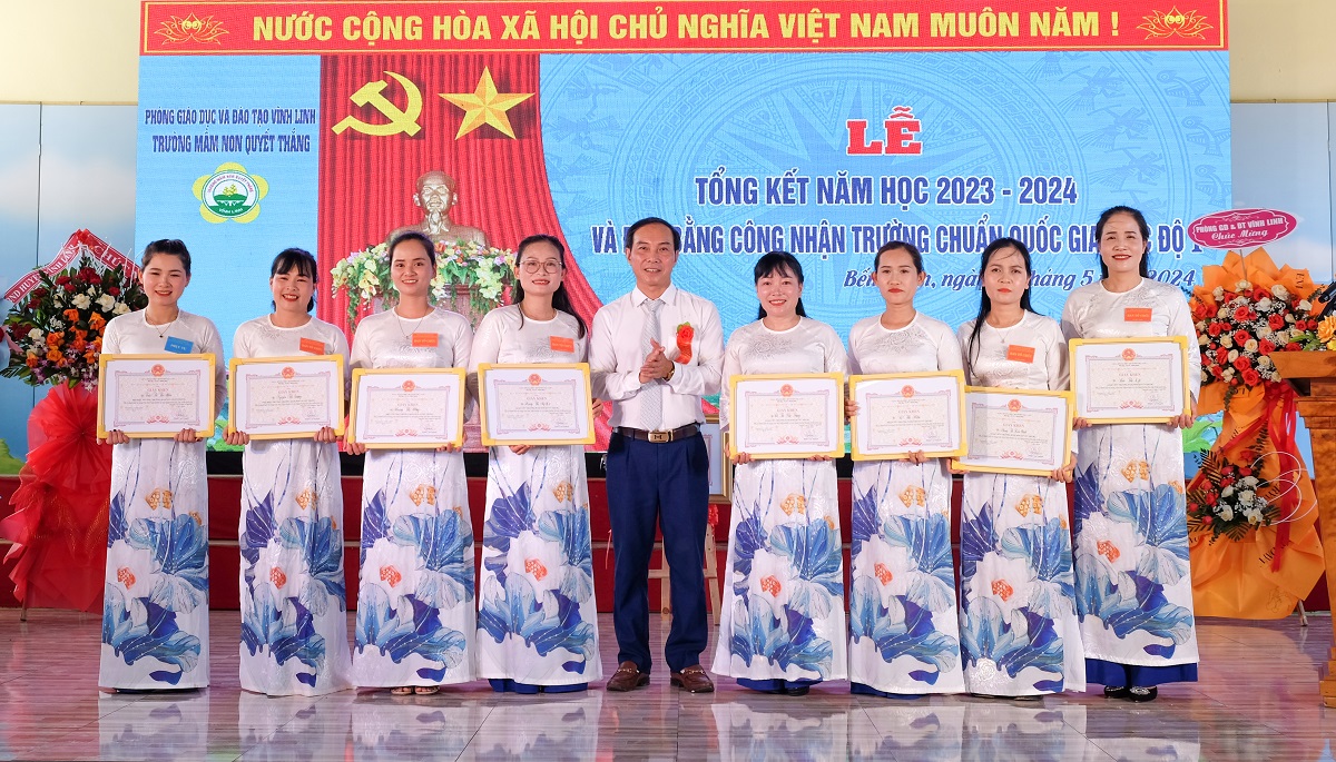 Nhân dịp này, UBND huyện Vĩnh Linh, UBND thị trấn Bến Quan đã tặng Giấy khen cho tập thể và nhiều cá nhân trường Mầm non Quyết Thắng vì có thành tích trong công tác xây dựng trường chuẩn thời gian qua.