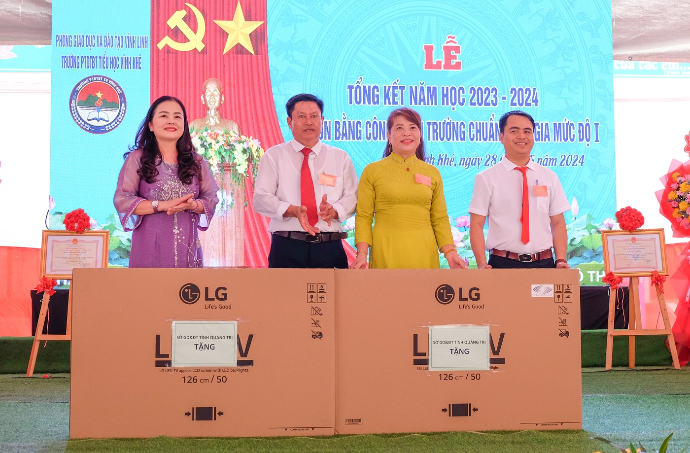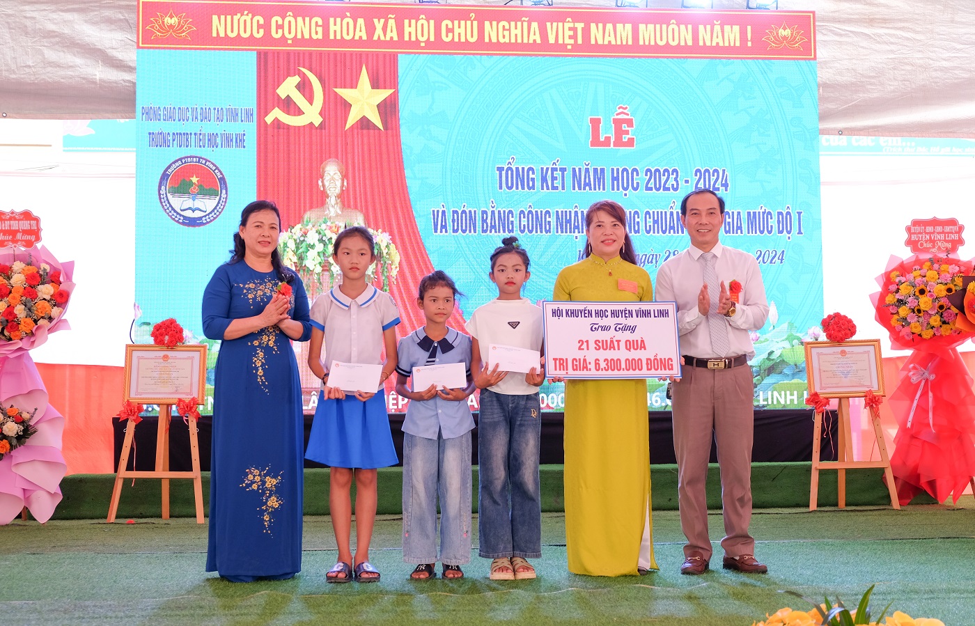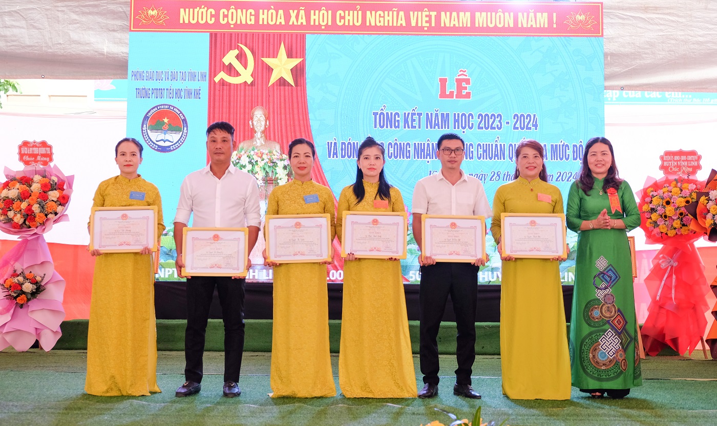 Ngày 28/5/2024, trường Phổ thông dân tộc bán trú Tiểu học Vĩnh Khê tổ chức tổng kết năm học 2023- 2024 và đón Bằng công nhận chuẩn quốc gia mức độ 1. Đến dự có Giám đốc Sở Giáo dục và Đào tạo tỉnh Quảng Trị Lê Thị Hương; Phó Bí thư Thường trực Huyện ủy, Chủ tịch HĐND huyện Vĩnh Linh Nguyễn Thị Hương.