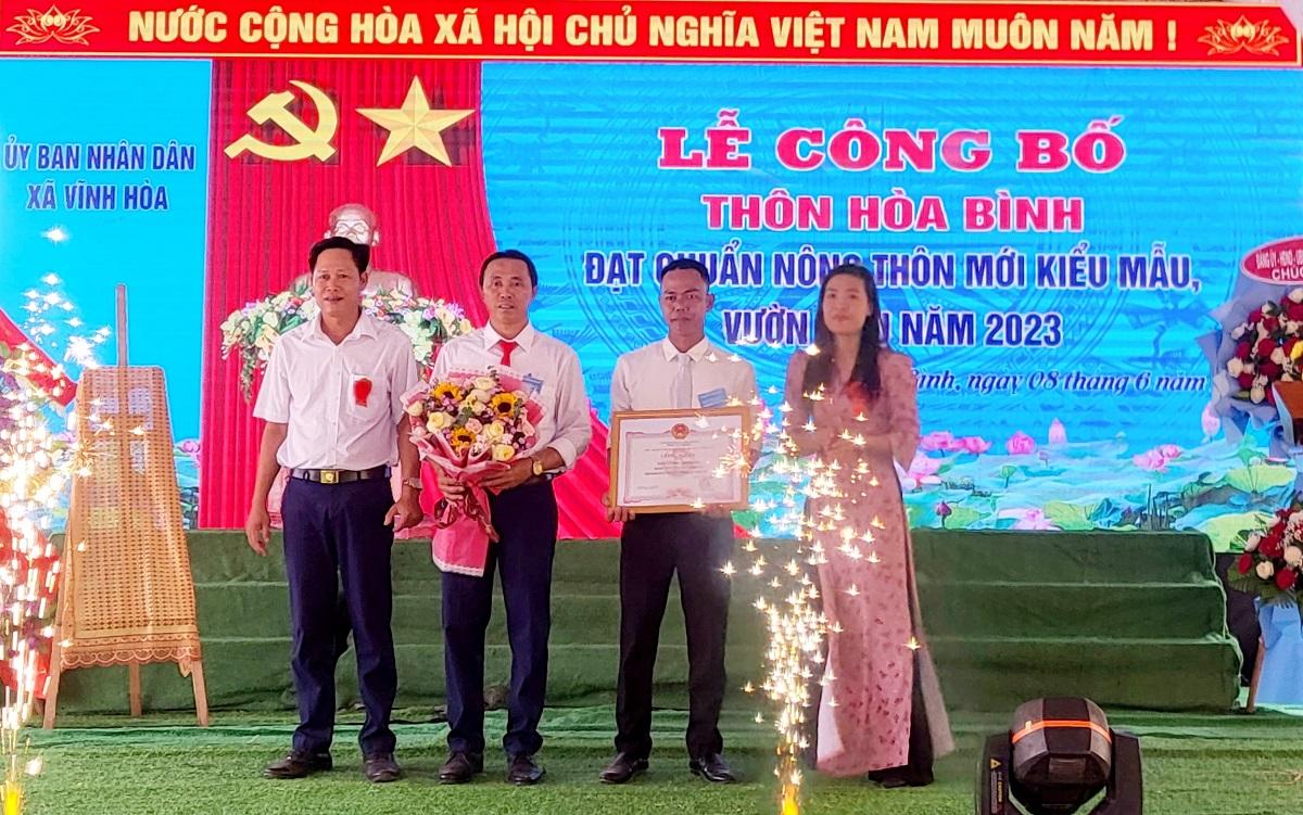 Ngày 8/6/2024, UBND xã Vĩnh Hoà tổ chức lễ công bố thôn Hoà Bình đạt chuẩn NTM kiểu mẫu, vườn mẫu năm 2023.