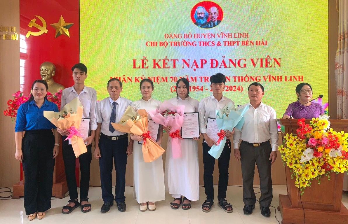 Hướng tới kỷ niệm 70 năm truyền thống Vĩnh Linh 25/8/1954 - 25/8/2024, ngày 12/6/2024, Chi bộ trường THCS&THPT Bến Hải đã tổ chức lễ kết nạp đảng viên cho 4 học sinh có thành tích xuất sắc trong học tập và rèn luyện. Tham dự có đồng chí Nguyễn Đức Lập- Phó Trưởng Ban Tổ chức Tỉnh uỷ, Nguyễn Thanh Toàn- Trưởng Ban Tổ chức Huyện uỷ Vĩnh Linh.