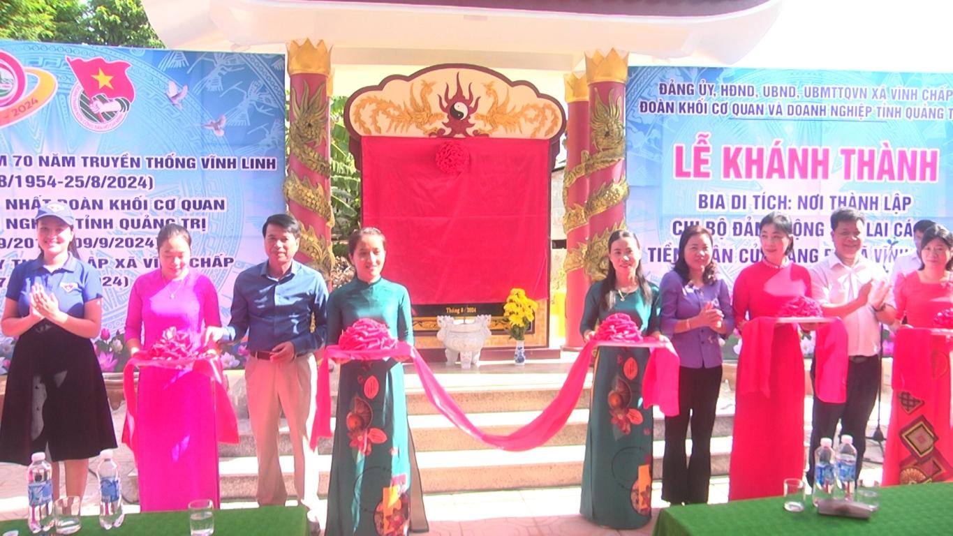 Ngày 18/8/2024, xã Vĩnh Chấp tổ chức lễ khánh thành công trình bia di tích, nơi thành lập Chi bộ Đảng Cộng sản Lai Cách, tiền thân của Đảng bộ xã Vĩnh Chấp. Dự lễ khánh thành có các đồng chí: Nguyễn Thị Hương - Phó Bí thư Thường trực Huyện ủy, Chủ tịch HĐND huyện; Nguyễn Thiên Tùng - Phó Chủ tịch UBND huyện; Võ Đức Diện - Chủ nhiệm UBKT Huyện ủy; Nguyễn Thị Thu Hoài - Phó Chủ tịch Ủy ban MTTQVN huyện.