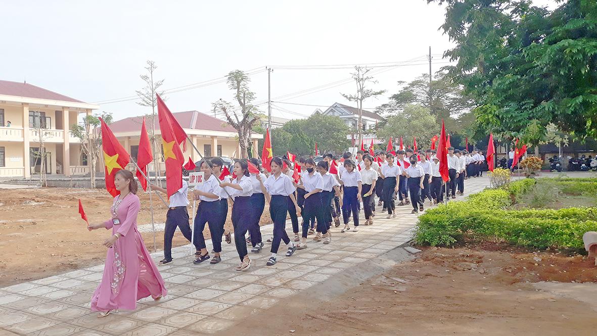 Trung tâm GDNNGDTX huyện Vĩnh Linh đón các em khối 10 nhập học trong ngày khai giảng năm học 2024- 2025 -Ảnh: N.V