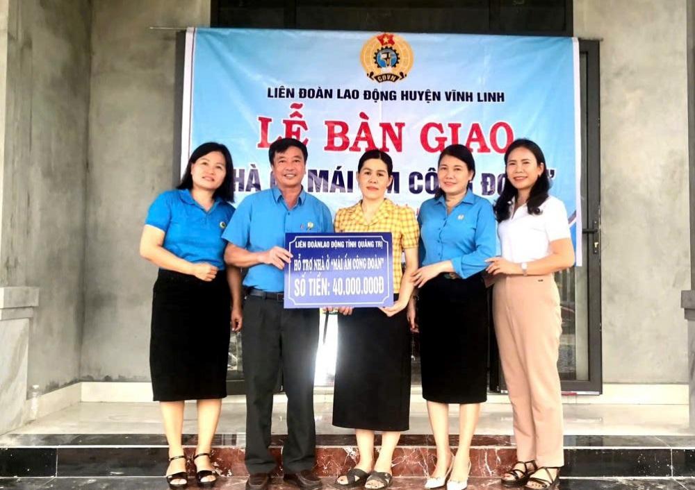 Liên đoàn Lao động huyện Vĩnh Linh vừa tổ chức lễ bàn giao nhà ở “Mái ấm Công đoàn” cho giáo viên Dương Thị Lệ Thuần là đoàn viên Công đoàn cơ sở trường Tiểu học Vĩnh Thủy.