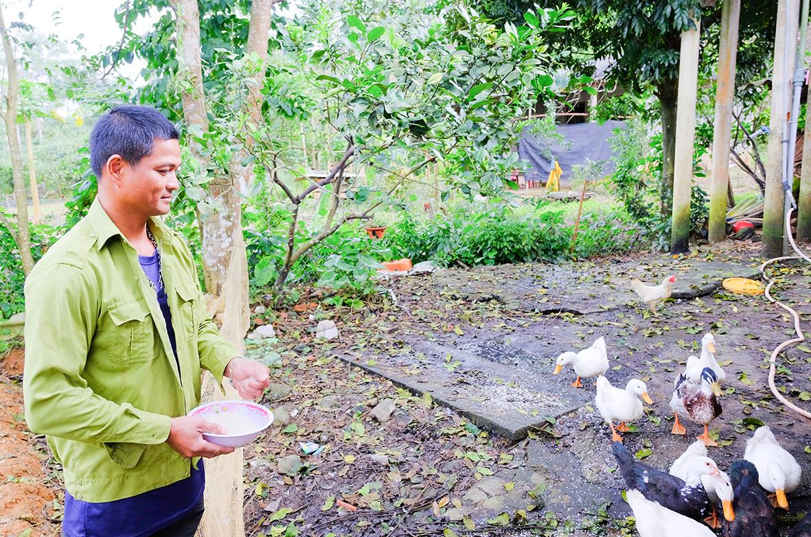 Anh Cườm chăm sóc đàn gia cầm - Ảnh: TRẦN TUYỀN