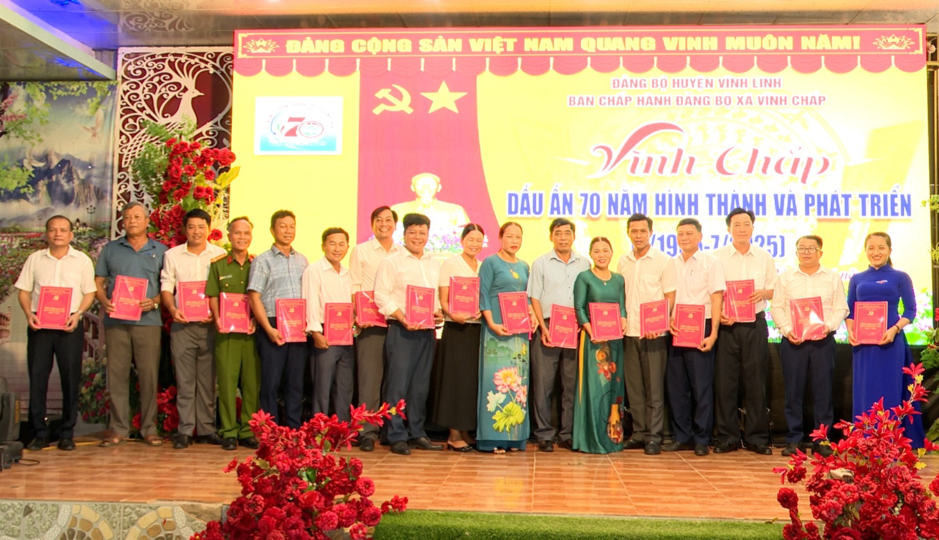 Nhân dịp này, Đảng ủy xã đã trao tặng cuốn “Lịch sử Đảng bộ xã Vĩnh Chấp” cho các cán bộ, đảng viên; đồng thời khen thưởng các tập thể, cá nhân có thành tích xuất sắc trong công tác xây dựng Đảng giai đoạn 2020- 2025.