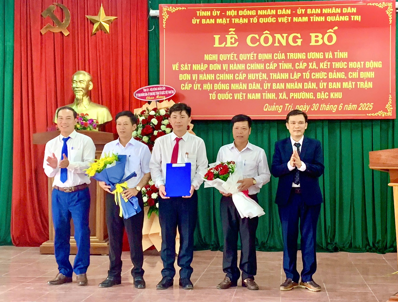 Sáng nay 30/6/2025, Đảng uỷ, HĐND, UBND, UBMTTQ VN xã Vĩnh Thuỷ long trọng tổ chức lễ công bố thành lập xã Vĩnh Thuỷ, ra mắt cấp uỷ, Hội đồng nhân dân, Uỷ ban nhân dân, UBMTTQ Việt Nam xã theo Nghị quyết, Quyết định của Trung ương và tỉnh về sáp nhập đơn vị hành chính cấp huyện, thành lập tổ chức Đảng, chỉ định cấp uỷ, Hội đồng nhân dân, Uỷ ban Nhân dân, UBMTTQ Việt Nam tỉnh, xã, phường, đặc khu.